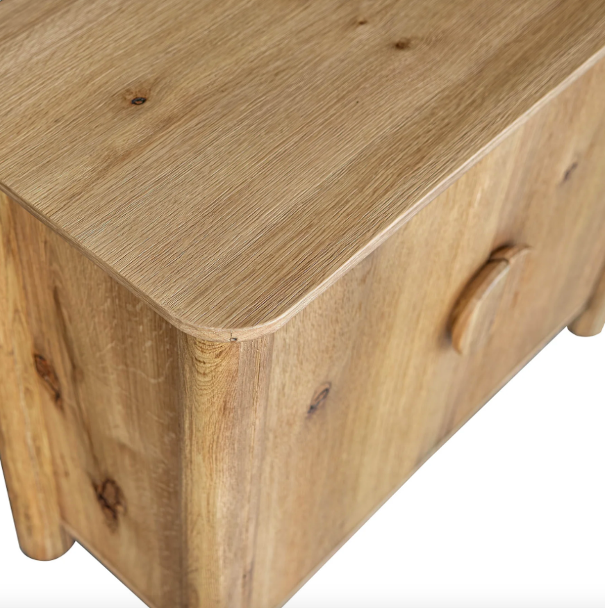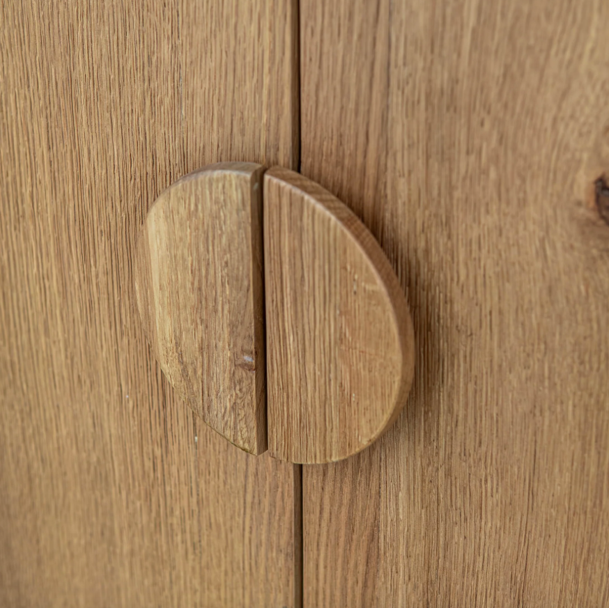 Doté de courbes épurées et d'un motif en chêne craquelé emblématique, ce petit buffet allie utilité raffinée et profondeur visuelle.