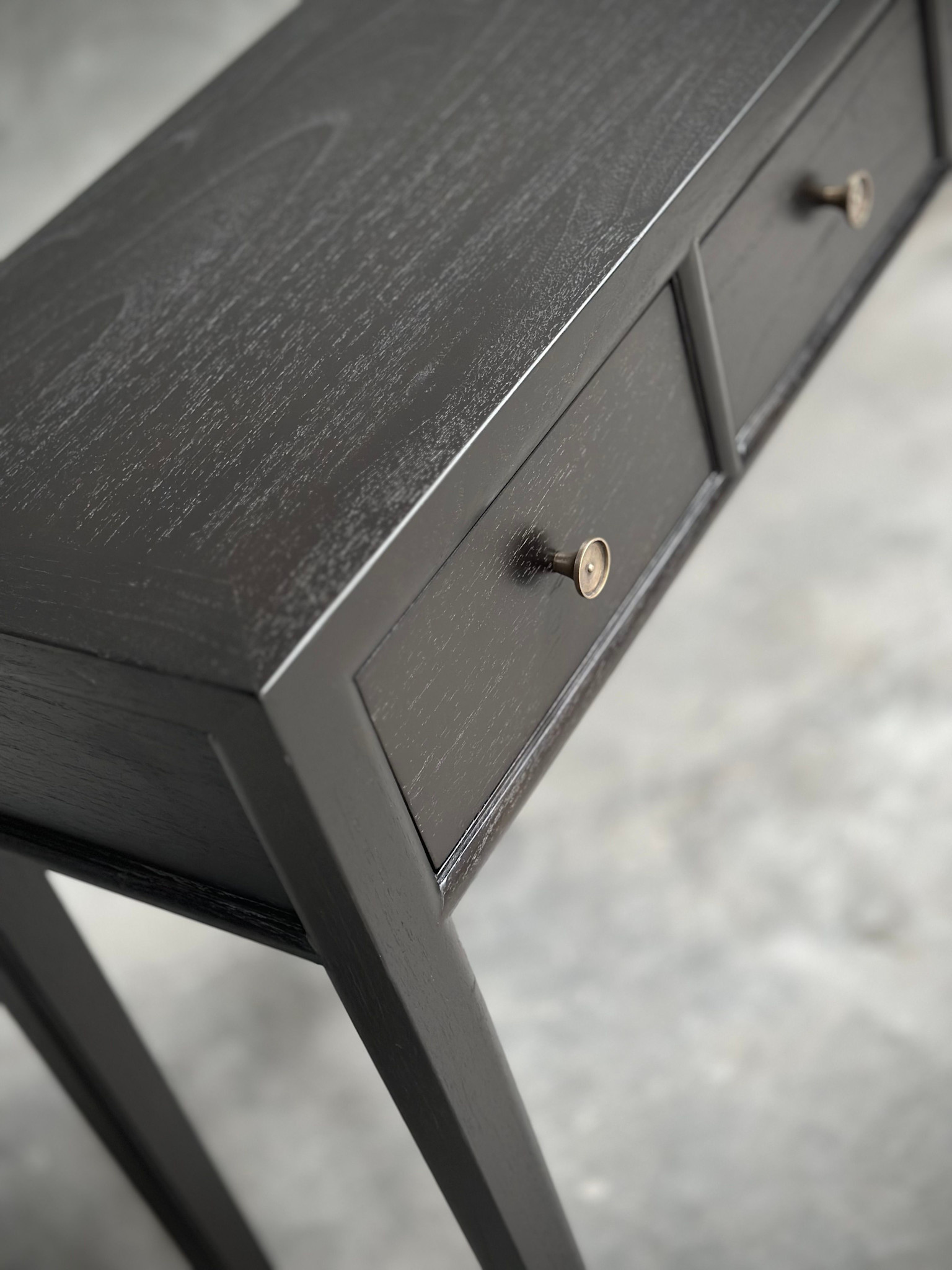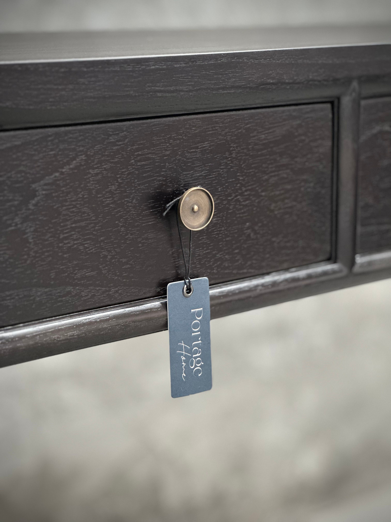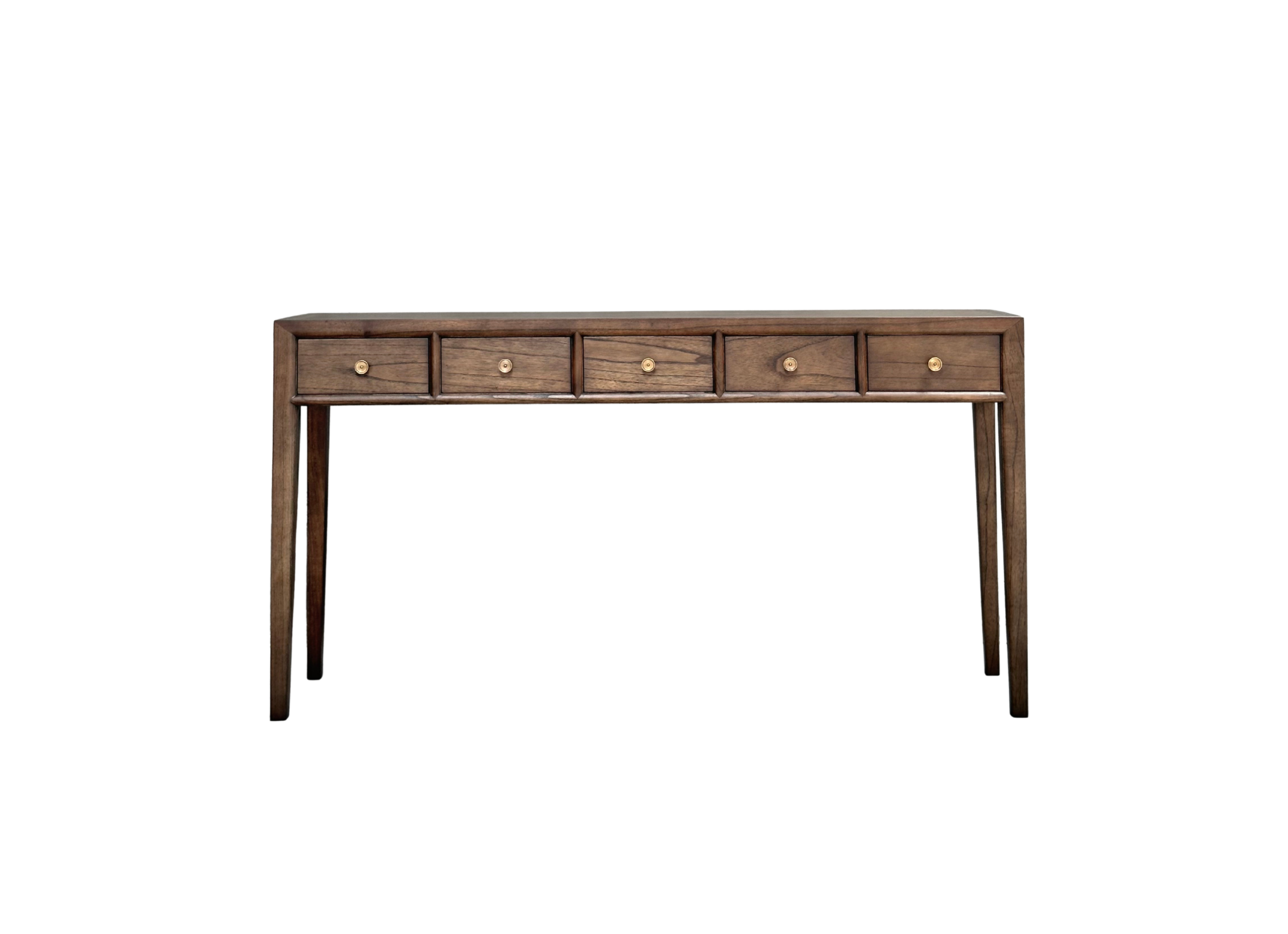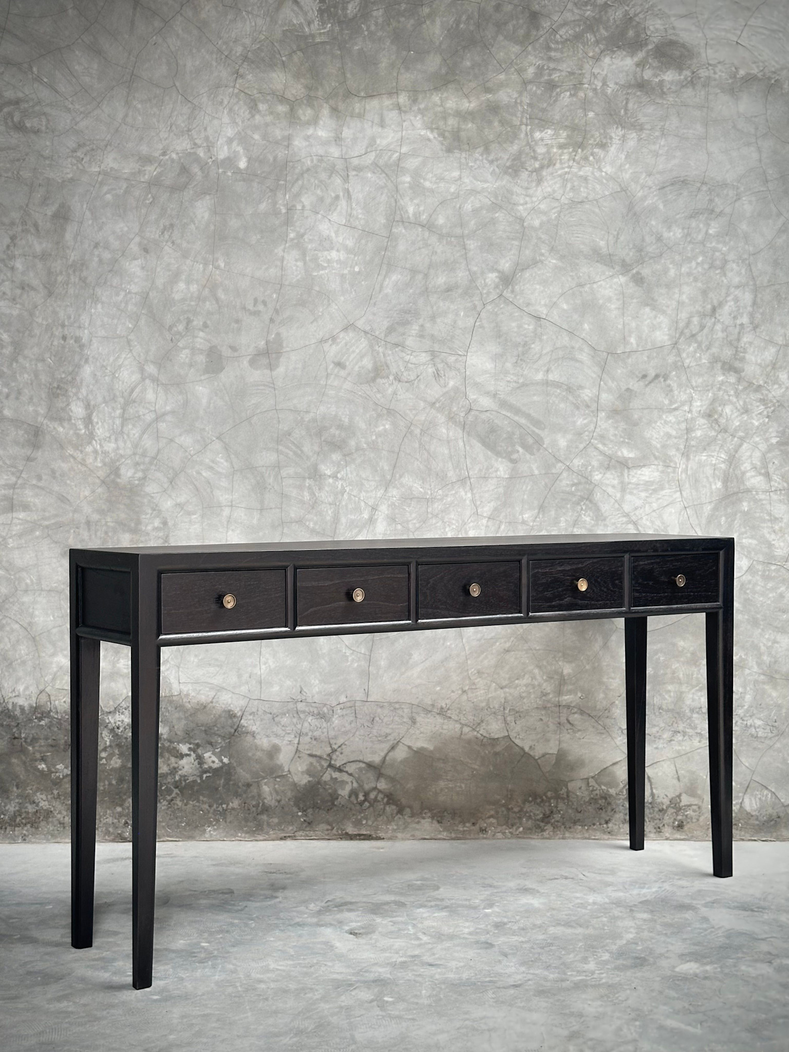 Console cinq tiroirs pour un rangement généreux et organisé.