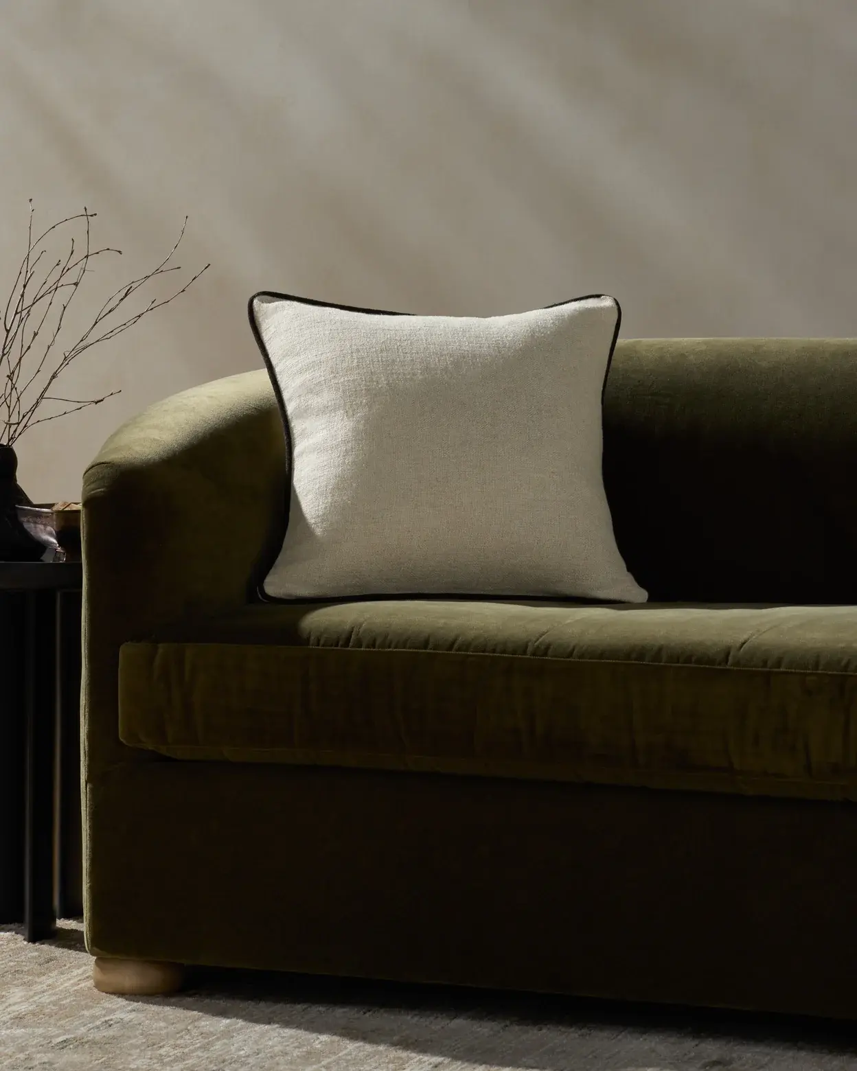 Le coussin Hudson se distingue par son tissage particulièrement doux au toucher. Choisissez parmi une variété de coloris contemporains, chacun rehaussé d'un passepoil plus foncé pour une touche de contraste subtile.