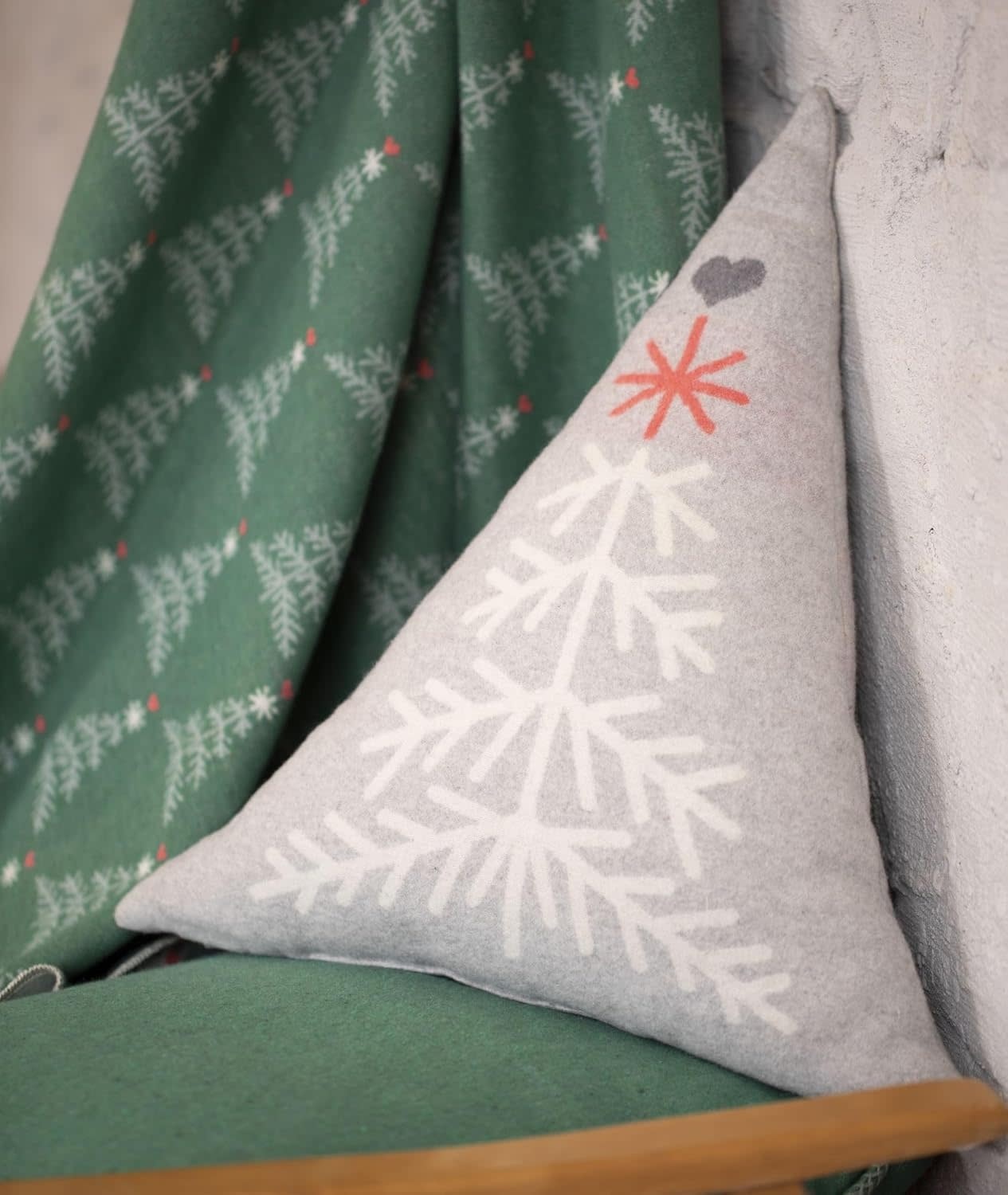Coussin douillet avec motif de sapin de Noël, parfait pour ajouter charme chalet et chaleur festive aux sofas, lits ou bancs