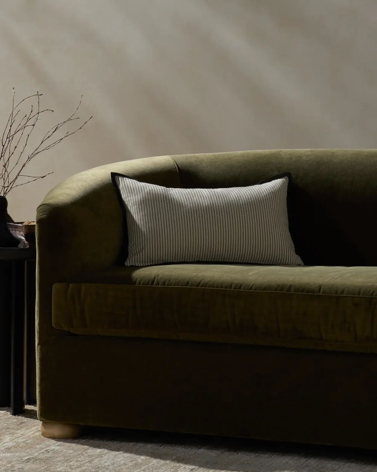 Les rayures douces sont parfaites pour superposer les coussins. Le coussin Sullivan, fruit de la collaboration entre Jeremiah Brent et Loloi, est un modèle charmant orné de fines rayures légères soulignées d'un liseré contrastant sur chaque bord.