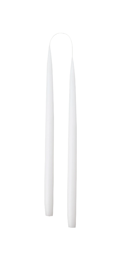 Les chandelles coniques danoises de la collection Twilight sont connectées à la mèche pour créer des paires et mesurent 3/4" de diamètre et s'adaptent à la plupart des bougeoirs coniques standard.