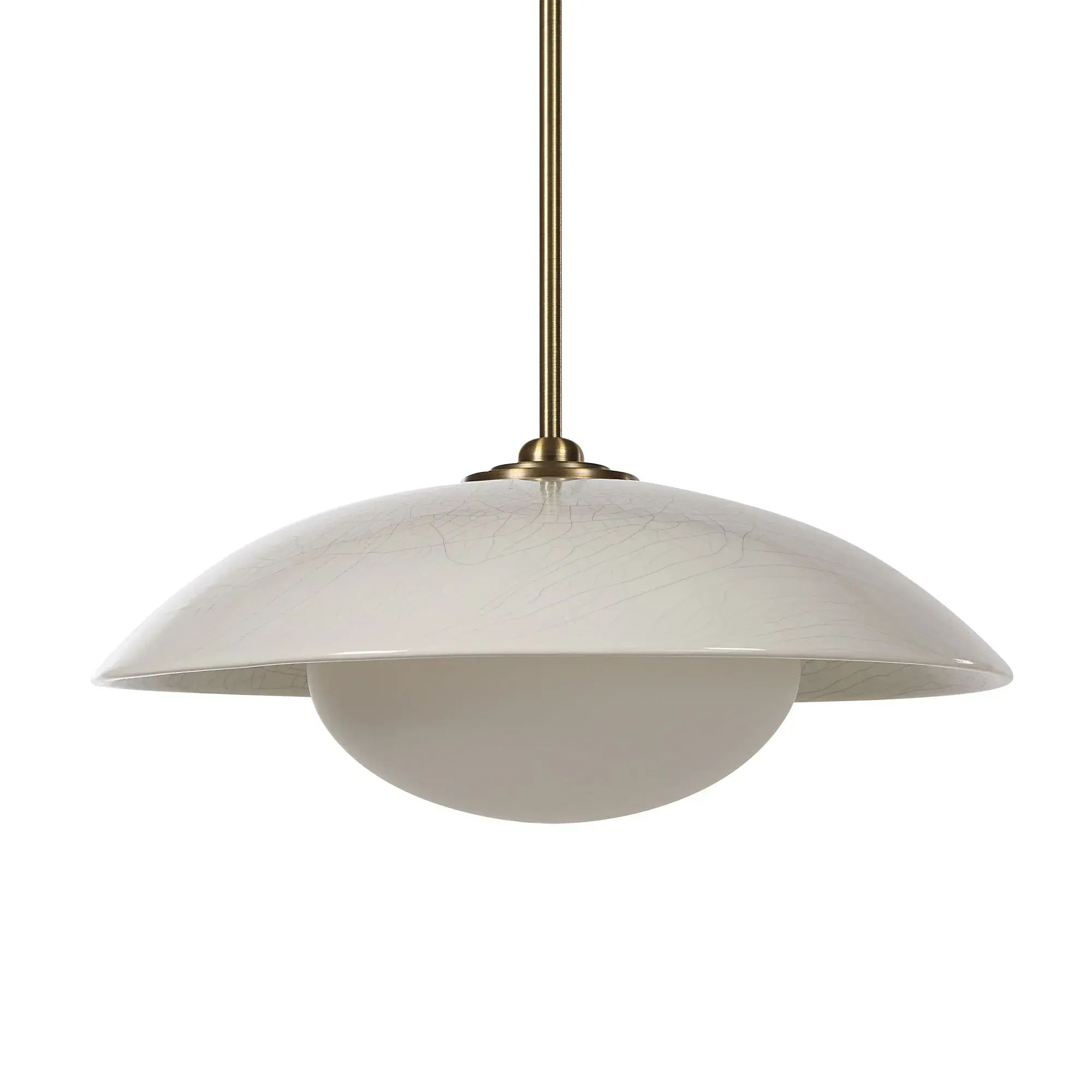 S'inscrireElle est dotée d'un corps en céramique avec un élégant vernis craquelé, de touches de laiton brossé antique foncé et d'un abat-jour en verre gravé qui inonde la pièce d'une lumière douce et diffuse pour une impression inoubliable.
