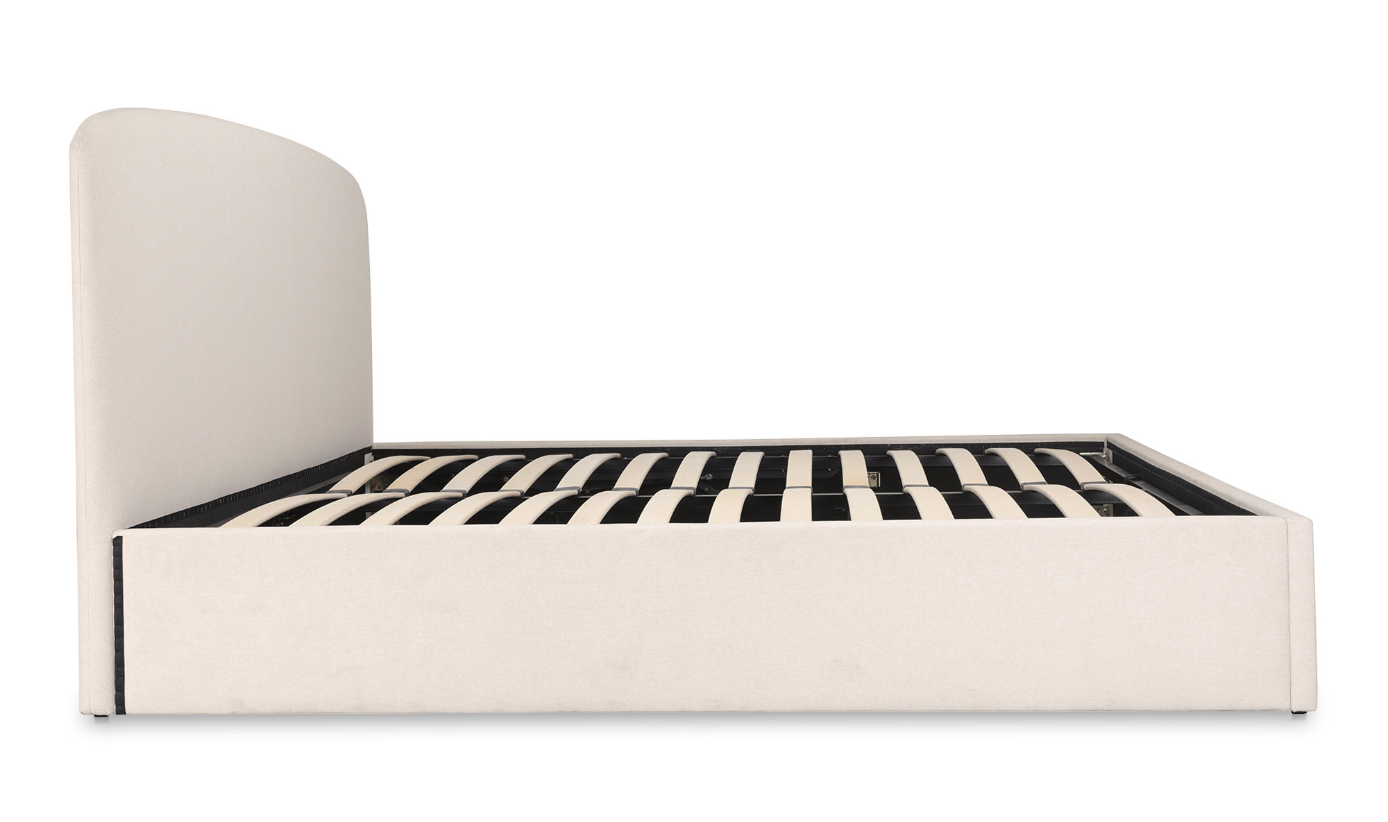 S'inscrireSous le matelas, un système hydraulique révèle un vaste espace de rangement soigneusement dissimulé, tandis qu'une housse entièrement amovible facilite le nettoyage.