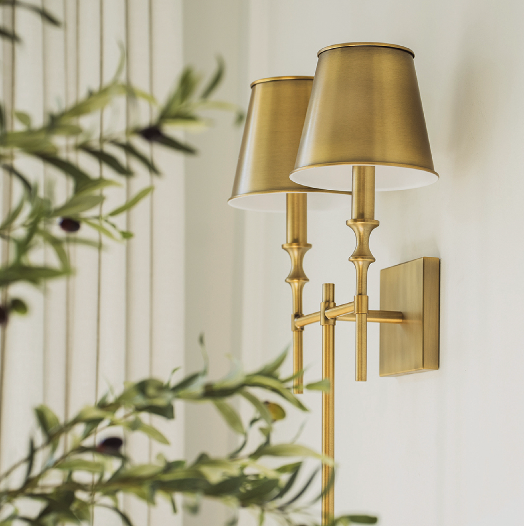 Description de l’abat-jour: Abat-jour droits en métal laiton vieilli avec intérieur blanc