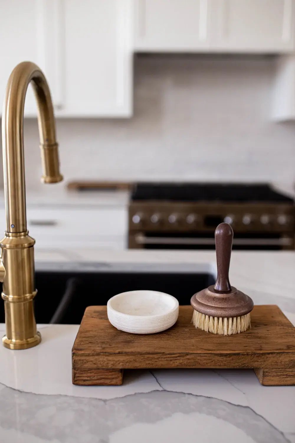 Cet accessoire à la fois fonctionnel et élégant s'intègre parfaitement dans toutes les cuisines. Utilisez-le avec notre brosse à vaisselle ou avec votre savon préféré.