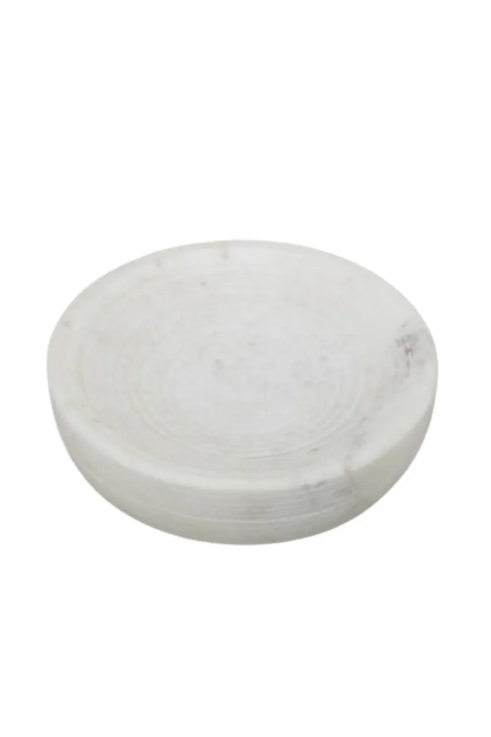 Le porte-savon et porte-brosse en marbre est sculpté dans du marbre massif et présente une texture légèrement côtelée à l'intérieur.