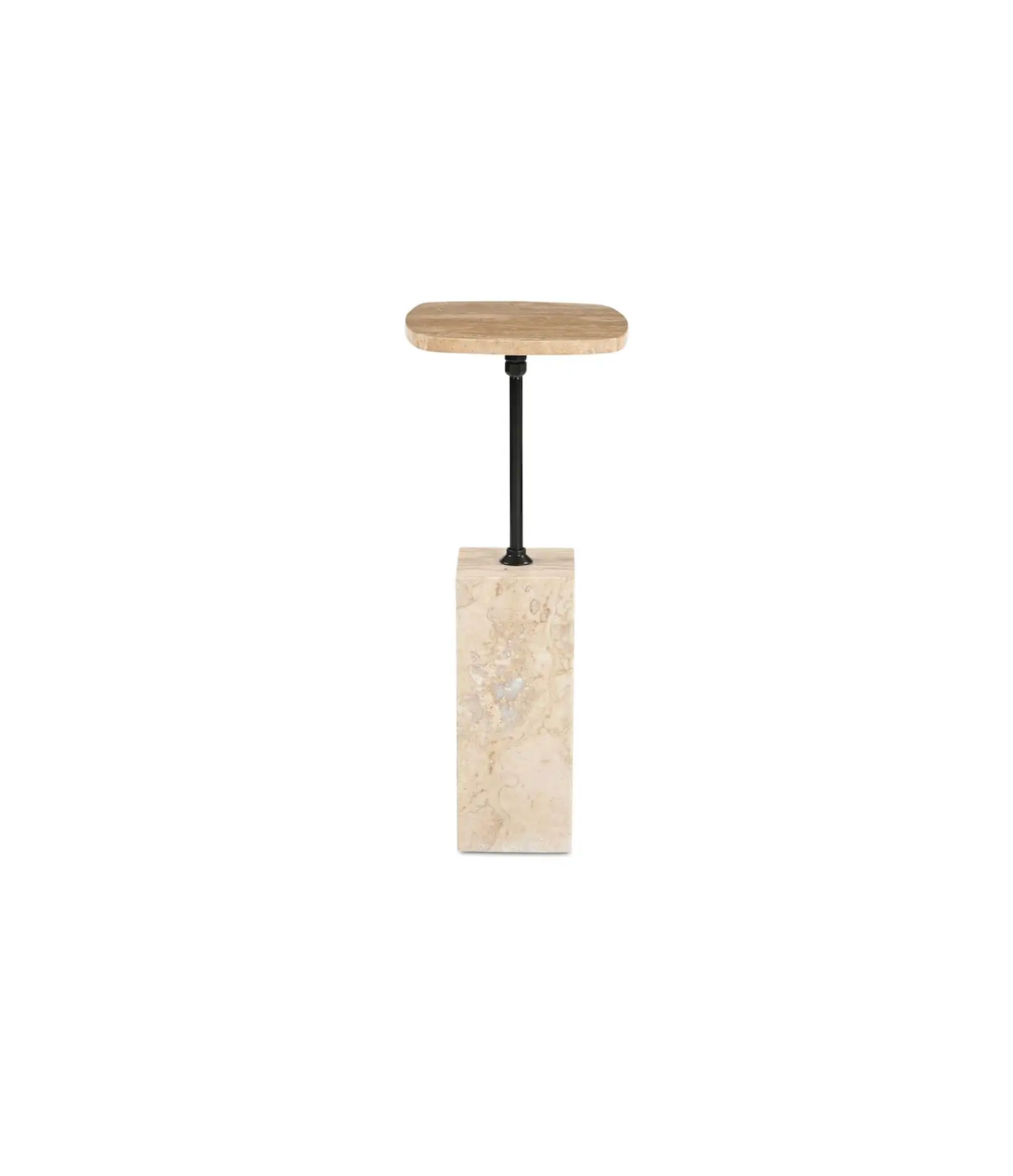 S'inscrireLa finition bronze noirci apporte une touche chaleureuse, tandis que le travertin offre une texture naturelle et des variations qui donnent à chaque pièce un caractère unique. Légère et aérienne, elle est idéale pour poser un verre, un livre ou un objet décoratif.