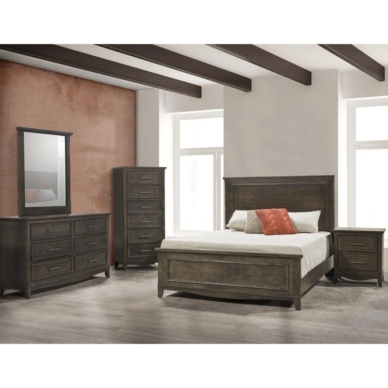 La table de chevet Gatineau de JLM Furniture est dotée de poignées en métal noir sur les façades des tiroirs, de pieds fuselés et est offerte en fini anthracite. Ce meuble apportera une touche d'élégance à toute chambre à coucher.