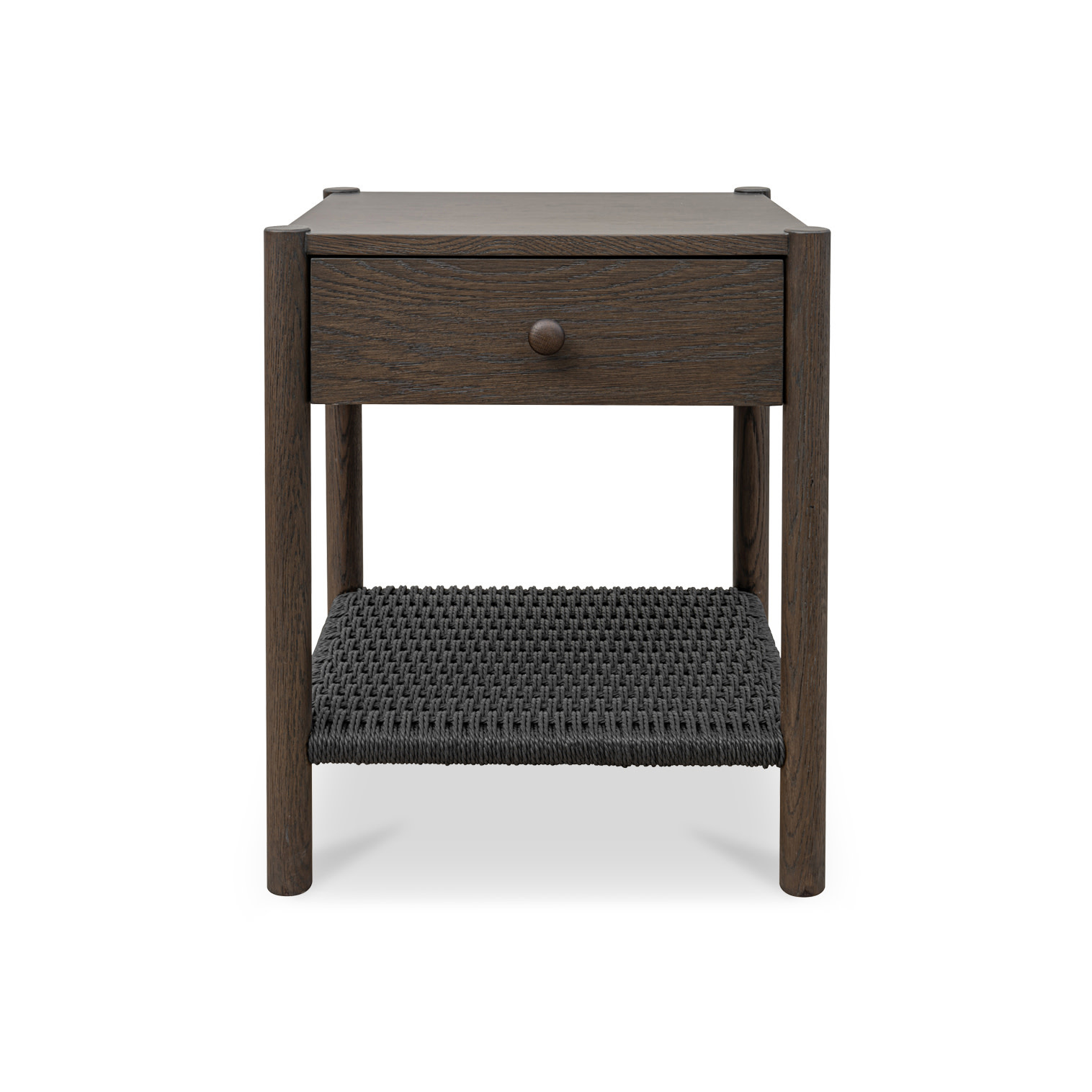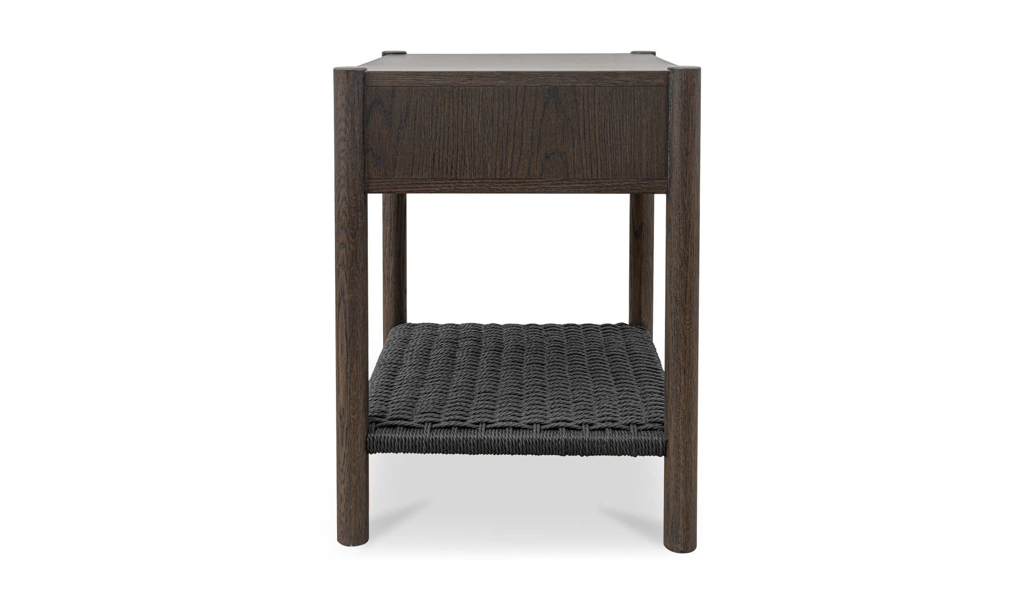 S'inscrireUn seul tiroir avec glissières à fermeture douce et une tablette ouverte en dessous offrent des solutions de rangement pratiques. Soutenue par des pattes en chêne massif, cette pièce allie luxe tranquille et attrait intemporel.