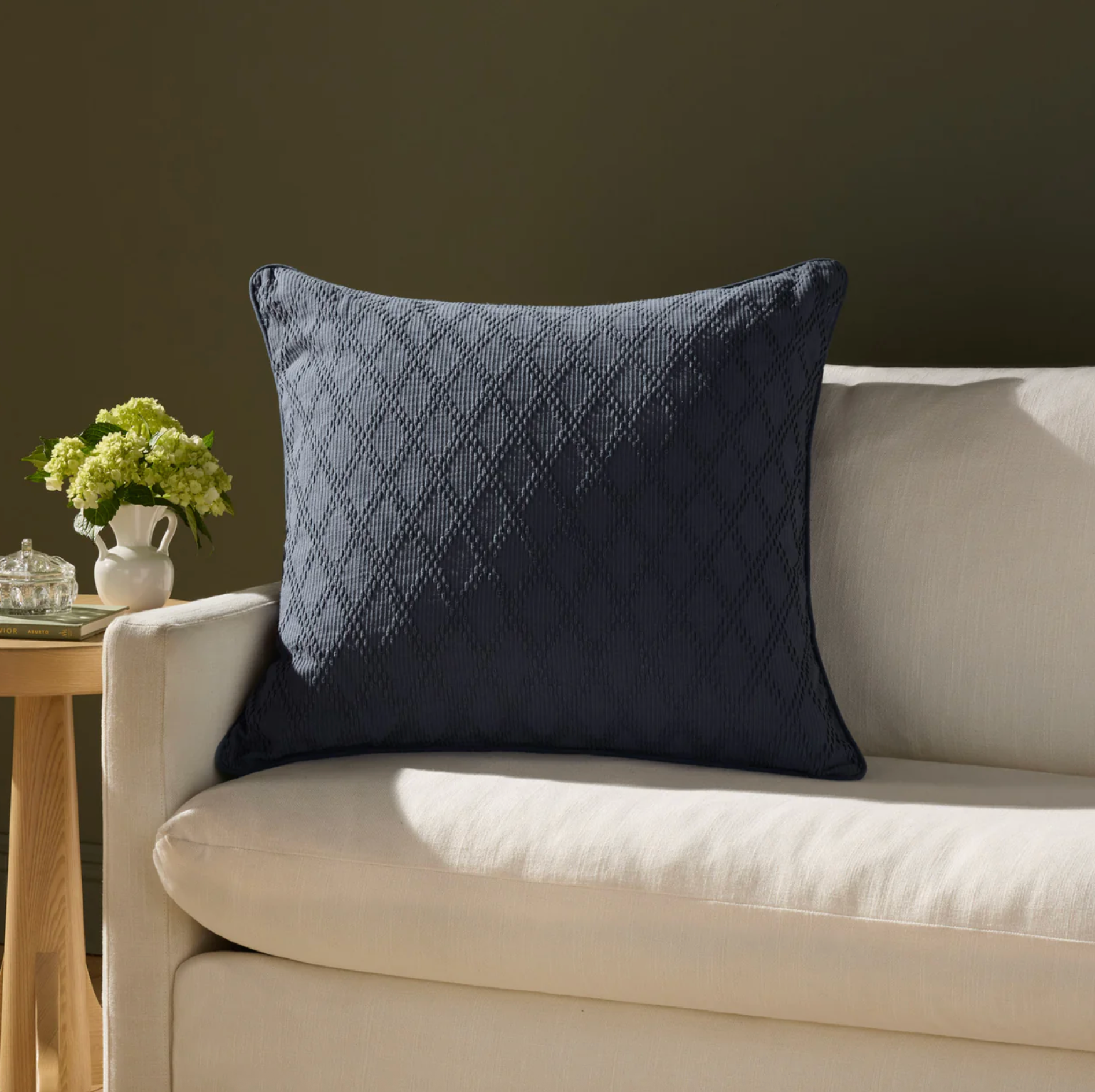 This solid throw pillow features a softly textured diamond design that brings dimension and subtle elegance to any setting. The timeless, oversized, modern accent pillow makes a versatile statement in living rooms or bedrooms alike.