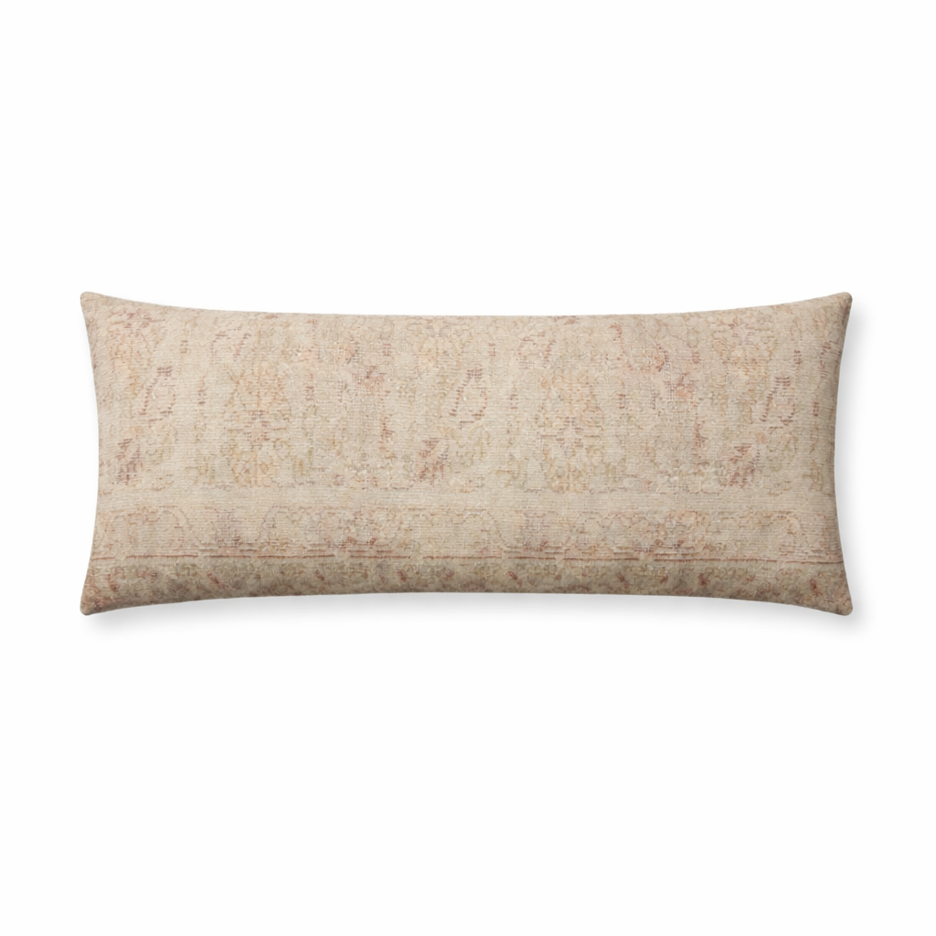 Inspired by the romance of vintage textiles, this lumbar cushion by Amber Lewis x Loloi features a beautifully distressed asymmetrical pattern in muted natural tones of washed wine and ivory.
