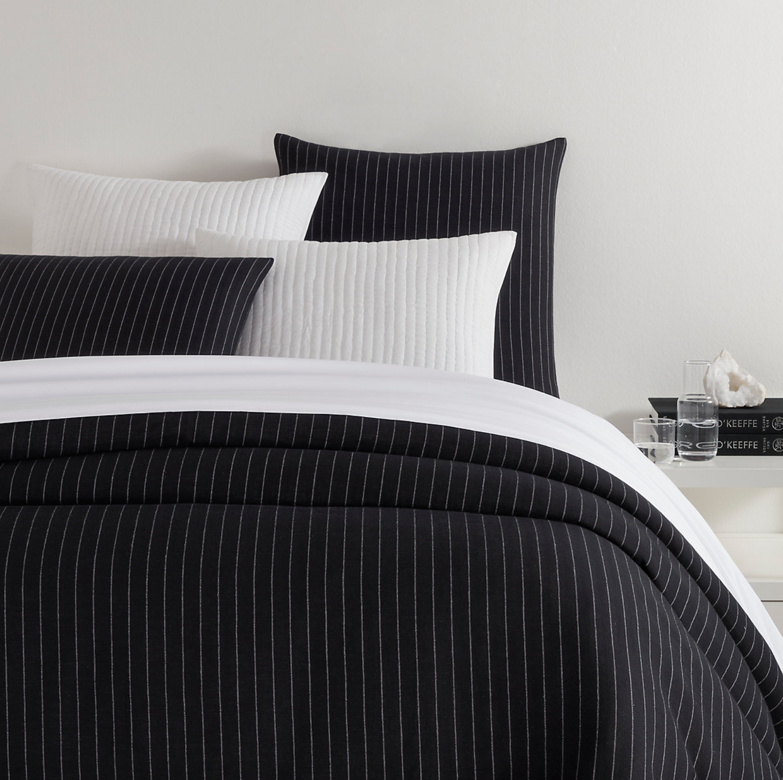 Create an accountThe cotton pin-tucked weave has been updated with a dapper menswear-inspired chalk stripe. Laundered and tumbled for cozy, lived-in comfort.