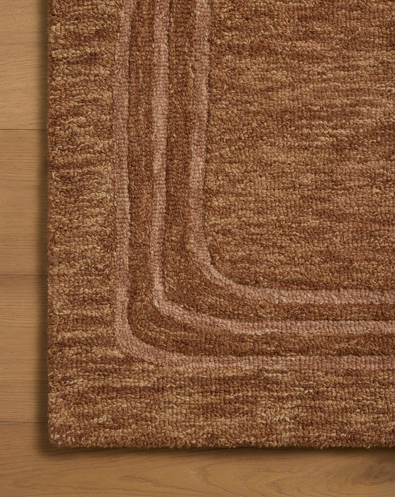 - The stunning rose and spice colorway is achieved using space-dyed yarns that create a strong heathered effect, with tonal striations sweeping from one side of this contemporary rug to the other.