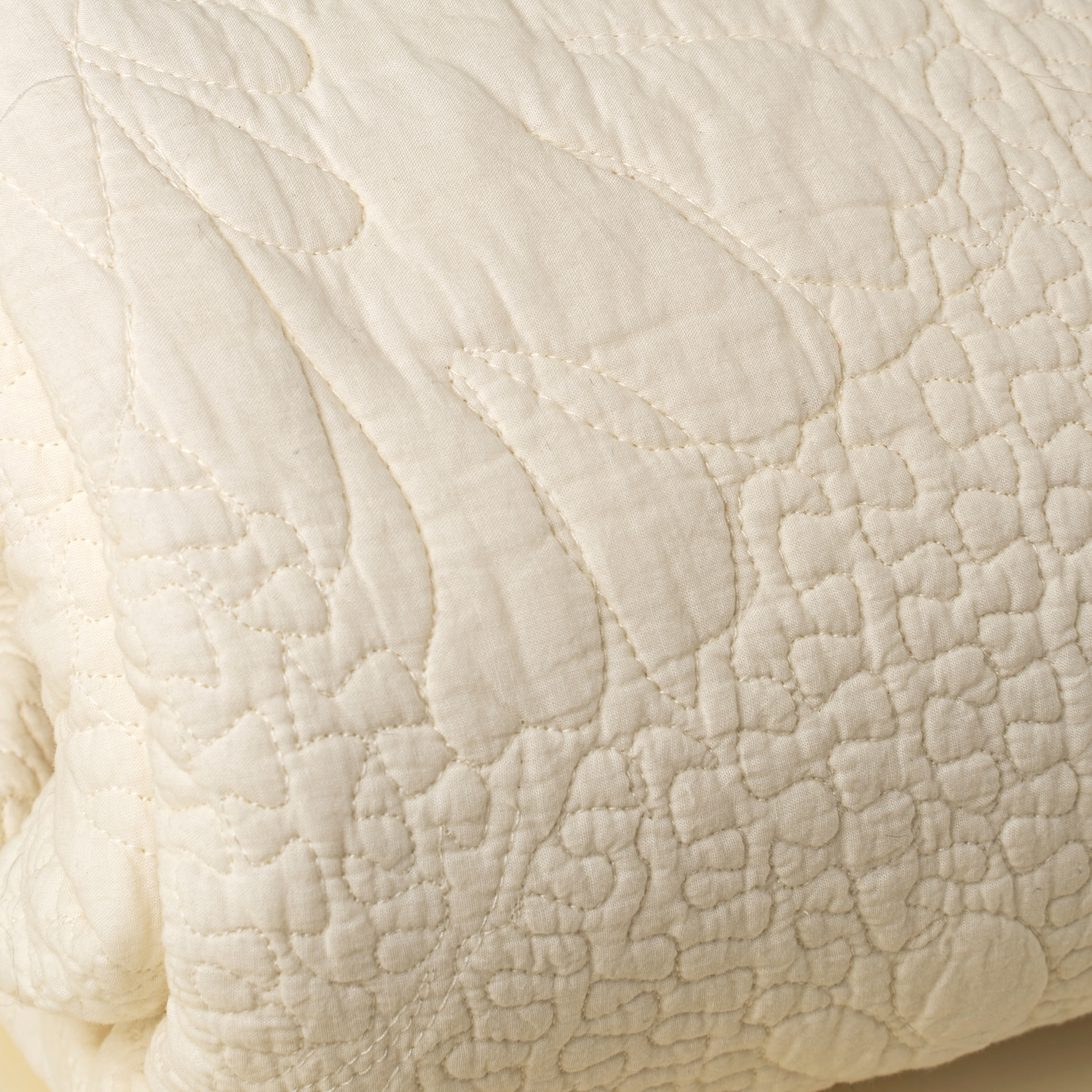 Bring handcrafted charm to your bedroom with the Florian Cotton Bed Quilt. In soft ivory, this quilt layers beautifully while offering plush comfort and subtle floral texture.