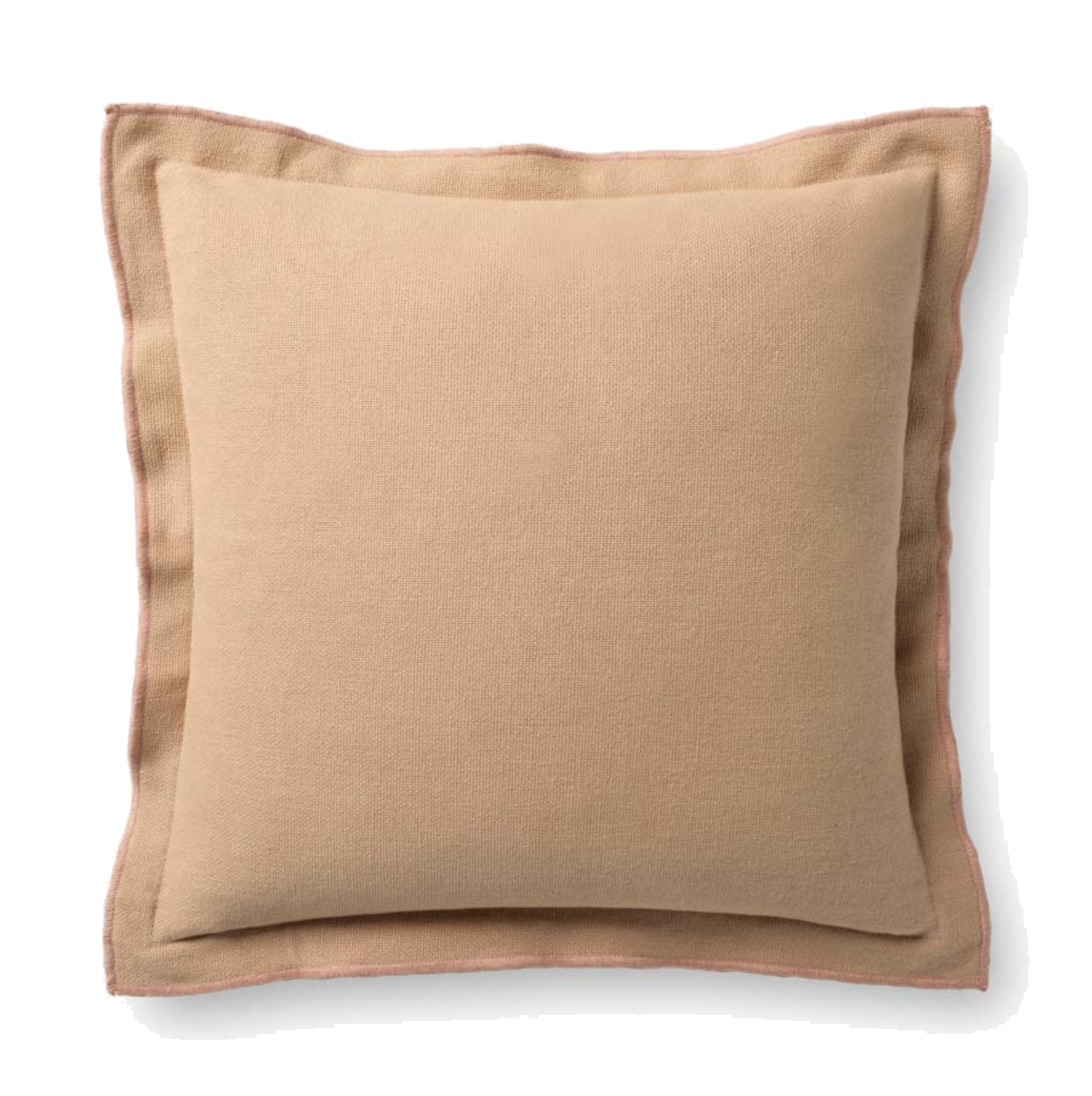 Captain is an Blush throw pillow from Leanne Ford x Loloi with flange edges for layered home decor. The pillow cover is machine-woven of cotton in India and measures 22” x 22”, a versatile size for living rooms and bedrooms.