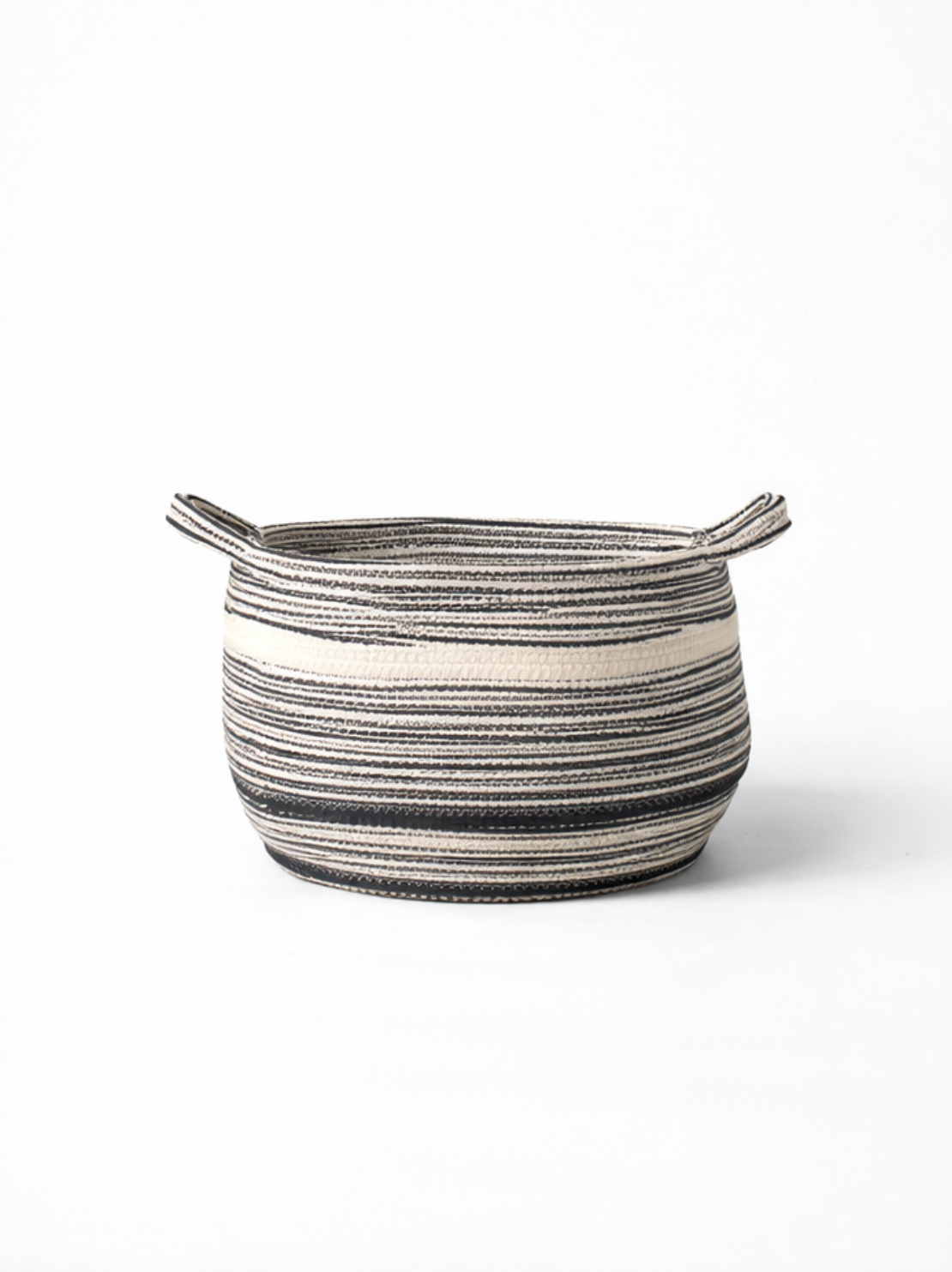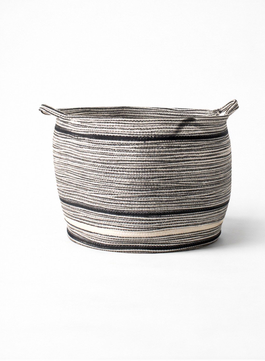 Add a modern touch to your organization with this basket of storage in braided cord, displaying an elegant motif in black and white. With its cylindrical shape and integrated handles, this panier is both practical and stylish.