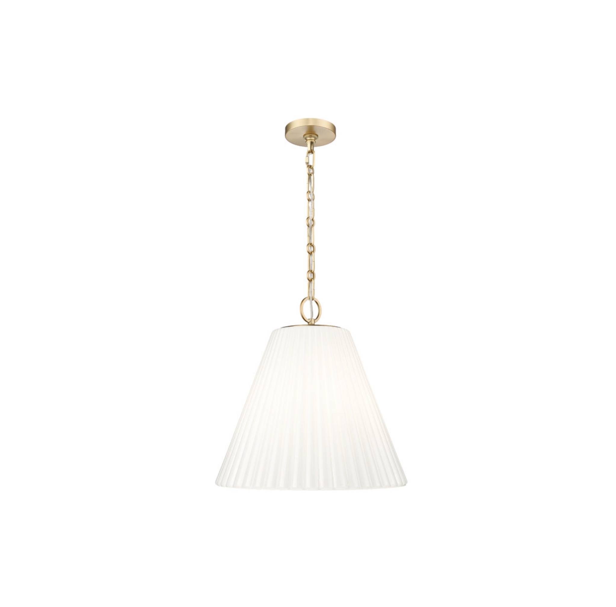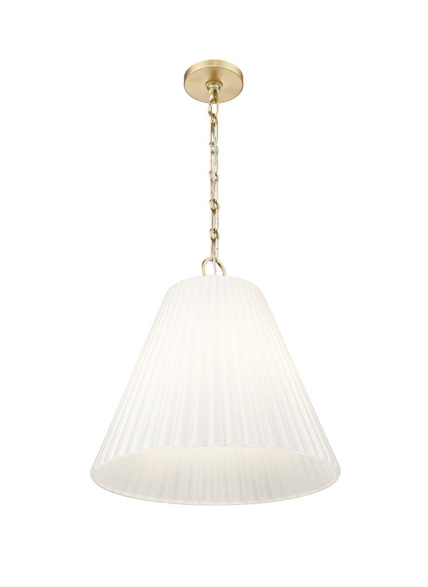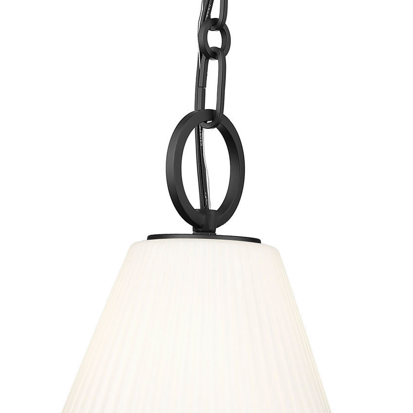 This modern one-light pendant is a beautiful choice alone or in series. It showcases a delicately fluted, conical glass diffuser for soft, elegant illumination over a kitchen island or in your living space.