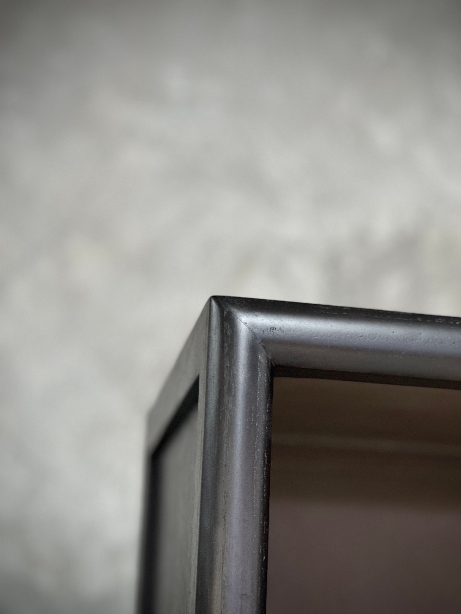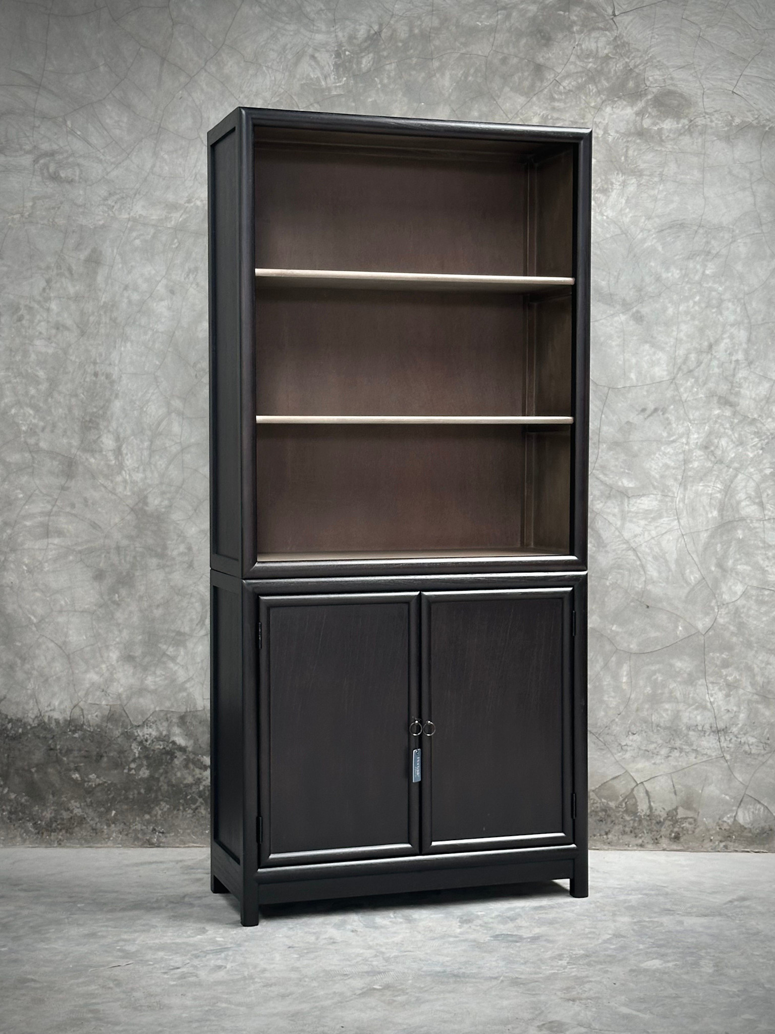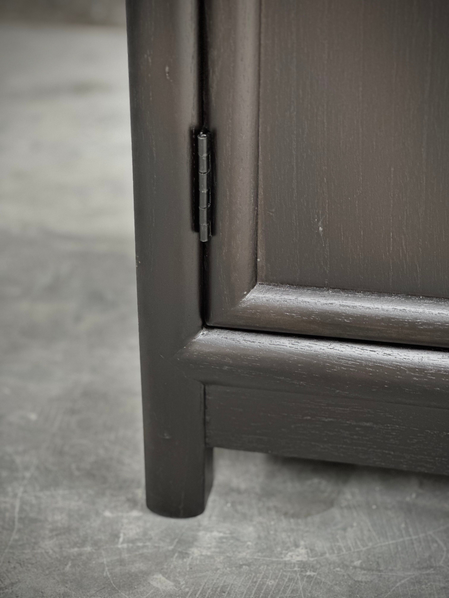 The Saint-Laurent Cabinet with wood doors offers a more understated and architectural approach to storage. Crafted entirely from mindi wood, its tall silhouette and deep, dark finish bring a strong yet balanced presence to the space.