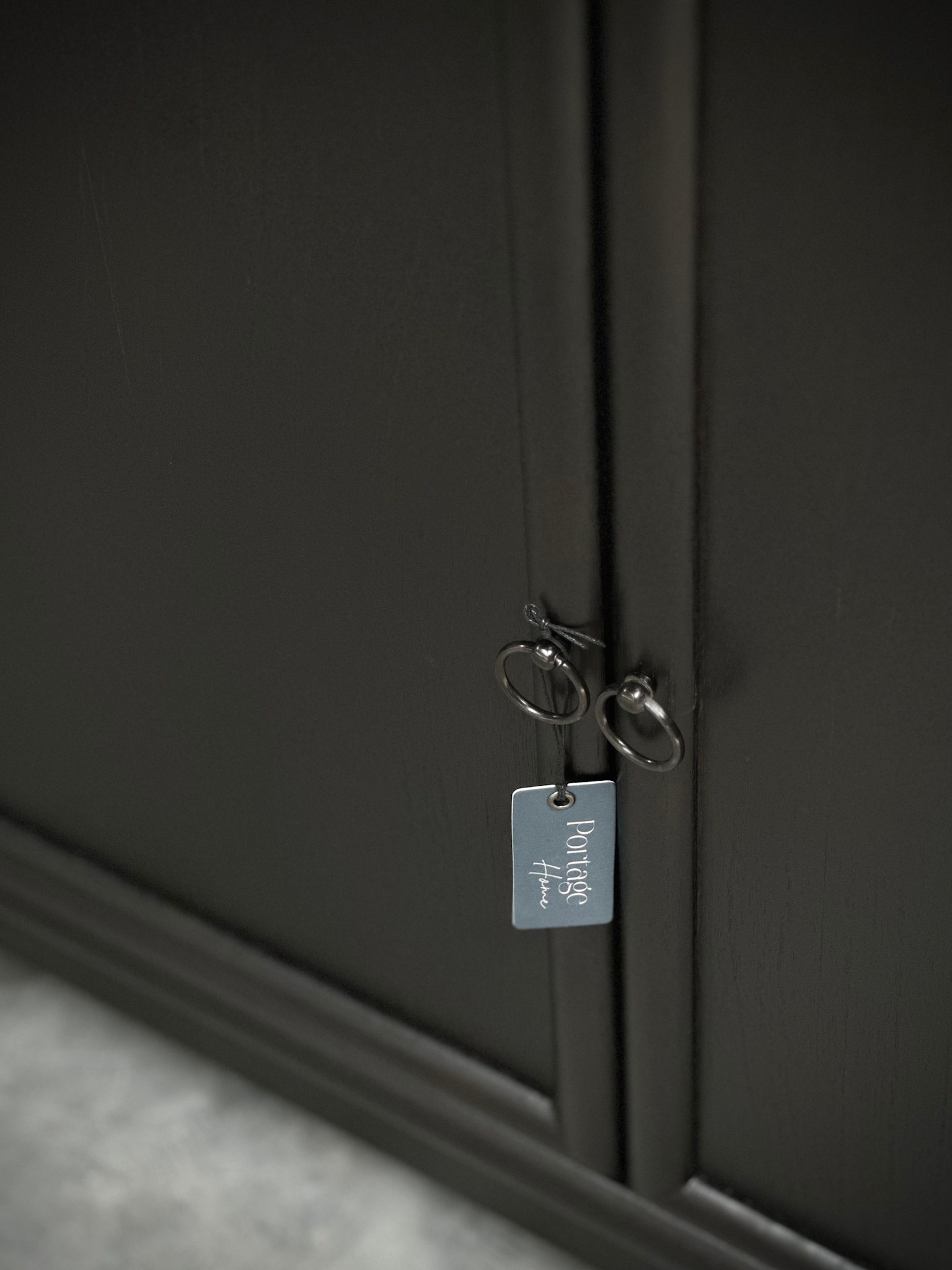 The solid doors conceal the contents with elegance, creating a calm and structured look that helps maintain a refined, uncluttered interior. Inside, integrated shelving provides generous and practical storage for tableware, linens, or everyday essentials.