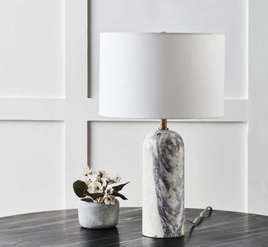 Create an accountThis table lamp makes a stunning impact when styled in a set, however, it has an exquisite effect when styled solo as well. The iron plated in antique brass and off-white cotton shade, draw out the delicacy and design appeal of the marble element.